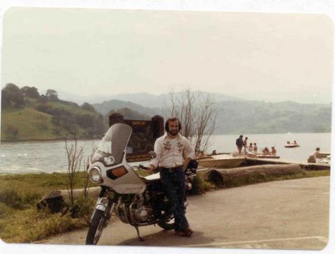 Haro with 1976 Honda 550 in San Jose. I added the fairing. It was stolen in 1981. I found the frame and the engine only - it was stripped and discarded in a creek in Morgan Hill