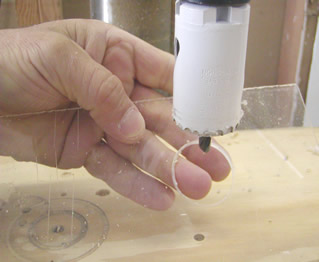 To make the template cut a 1 3/8" hole with a holesaw on a 1/16" plexiglass.