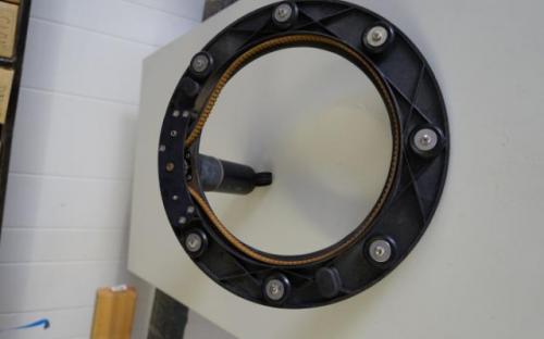First remove the 3 brackets that hold the drive to the wheel, disconnect the motor plug and remove the wheel and remove the disk.